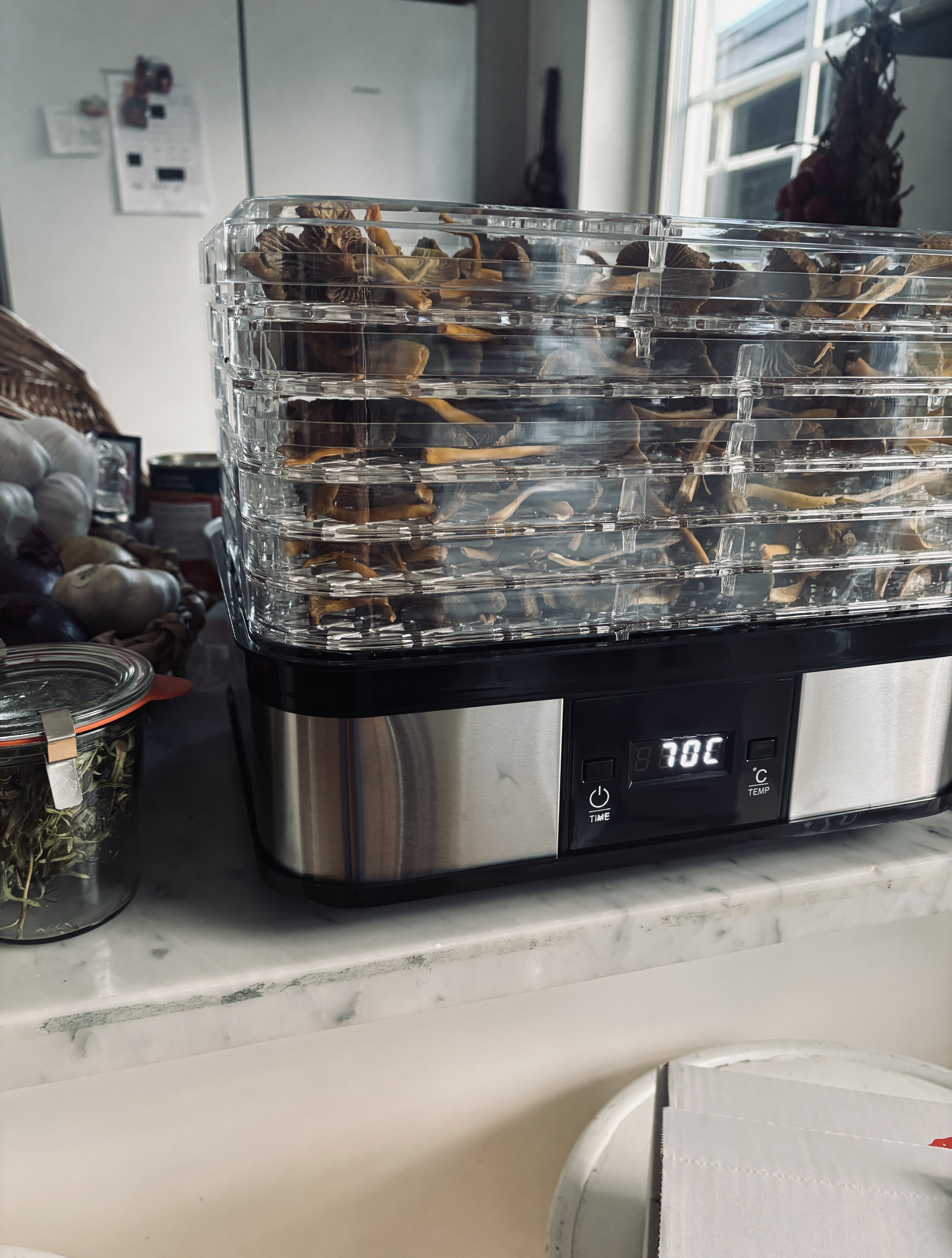 Jag torkar svampen i torkmaskin då det känns smidigast men det självklart även bra att torka på tidningspapper, galler eller i ugnen på låg värme. Brukar då ha ugnen på 50 grader och ha ugnsluckan lite på glänt så det inte blir för varmt. Brukar använda mig av en slev och ställa upp den med.