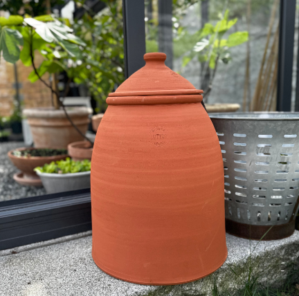 Rabarberkruka eller som engelsmännen säger Rhubarb forcer. Ljusbristen och värmen när man placerar krukan/klockan över, gör att rabarberknopparna snabbar upp tillväxten samt gör primörerna extra mjälla och mycket delikata i smaken. Dessutom är ”Rhubarb forcern” en mycket vacker dekoration i grönsakslandet. Rabarbern som kommer upp i klockan kallas glasrabarber och den här odlingsmetoden gör också att rabarbern får en mindre oxalsyrehalt.