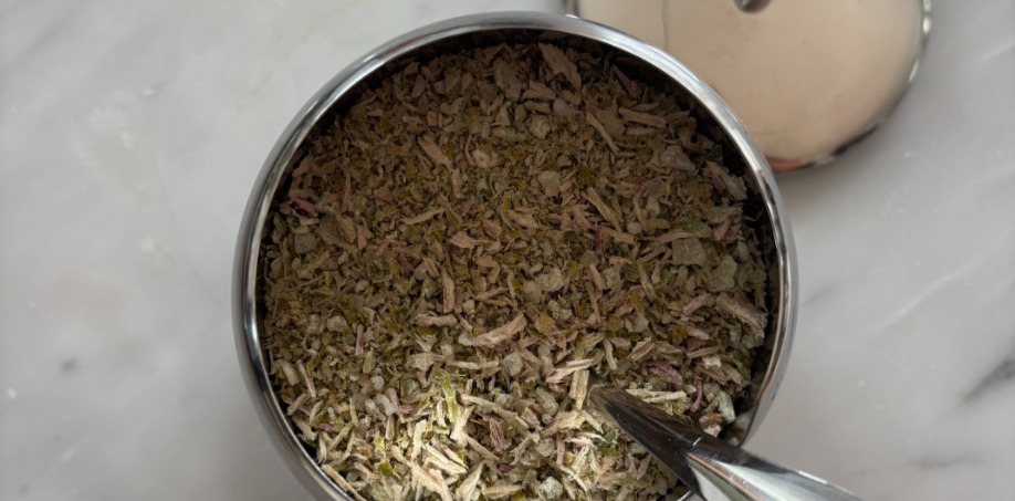 Hacka alla grönsaker och mixa med en stavmixer i en bunke. Blanda med lika mycket salt och mixa lätt så att det blandas. Bre ut röran på ett bakplåtspapper och låt gå i ugnen på en plåt i en låg temperatur. Jag hade 50 grader och lät den gå ca 3 timmar. Titta till den då och då samt vänd runt. Alla vätska ska försvinna och det ska bli helt torrt. Förvara i en tätt försluten burk eller behållare. Klart!